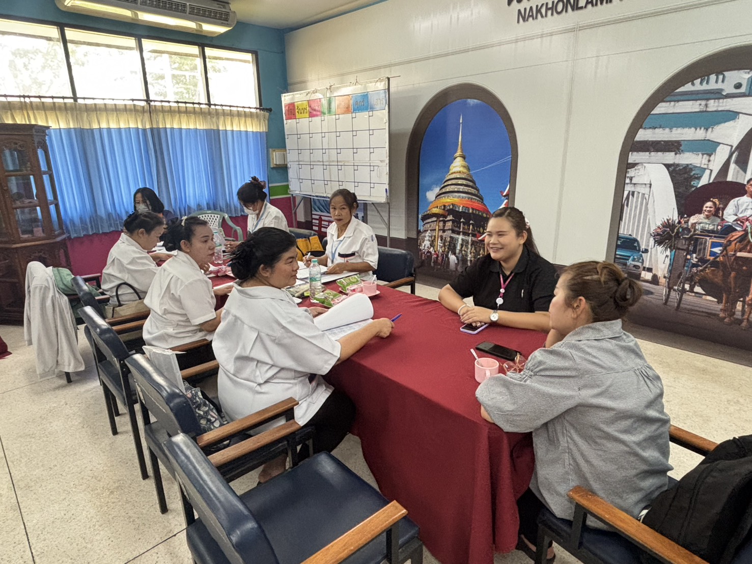 นางพัชรินทร์ เสนาะสันต์ ผู้อำนวยการศูนย์พัฒนาการจัดสวัสดิการสังคมผู้สูงอายุจังหวัดลำปาง มอบหมายให้ นางนภัทร สิงห์ทอง พี่เลี้ยง ส.2 และนางสาวนันท์สินี โพธินาค พี่เลี้ยง ให้การต้อนรับอาจารย์ผู้ดูแลการฝึกภาคปฏิบัติของผู้เข้าฝึกภาคปฏิบัติด้านการบริบาลผู้สูงอายุ 420 ชั่วโมง จากราชวิทยาลัยจุฬาภรณ์ วิทยาลัยวิทยาศาสตร์การแพทย์ เจ้าฟ้าจุฬาภรณ์ เพื่อประเมินและติดตามผลการฝึกภาคปฏิบัติการดูแลผู้สูงอายุ ณ ศูนย์พัฒนาการจัดสวัสดิการสังคมผู้สูงอายุ จังวัดลำปาง